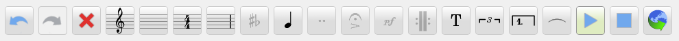 - The toolbar lets you change the properties of one or several selected notes (e.g. accidental, articulation, or duration).