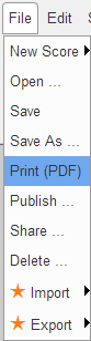 - Use the File/Print menu to display your score as a PDF document in a new browser tab, and print it.